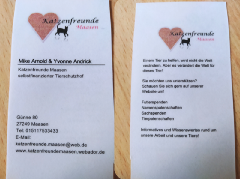 In den nächsten Bildern zeigen wir euch einen kleinen Rückblick auf unsere bisherigen Visitenkarten – von den ersten mutigen Entwürfen bis hin zu unserem aktuellen Design. Jede Karte steht für eine Phase in unserem Vereinsleben, für Menschen, Begegnungen und natürlich: für jede Menge Katzenliebe.