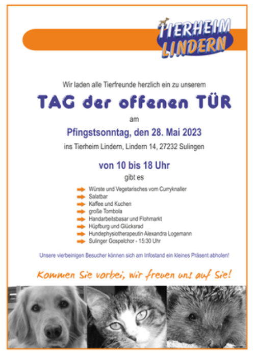 Heute bei strahlendem Sonnenschein pünktlich zu Pfingsten, war im Tierheim-Lindern "Tag der offenen Tür".