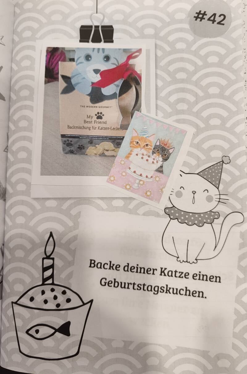 Mit diesem Challenge-Buch sammeln du und deine Katze unvergessliche Erinnerungen! Gestaltet zusammen eine Sammlung schöner Momente, an die ihr euch immer erinnern werdet. Dieses Cat Challenge Buch ist nicht nur ein Buch, es ist eine Reise voller Spaß, Abenteuer und Liebe.